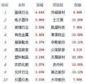 从盘面上看,板块全线飘红,稀土、造纸、半导体、钢铁、锂电池、芯片、消费电子等板块居涨幅榜前列;银行、券商、航运、地产、白酒等板块涨幅相对较小。