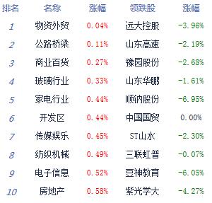 从盘面上看,板块普遍飘红,水泥、有色、碳中和、航运、电力、建材、煤炭等板块居涨幅榜前列;视听器材、养殖业、零售等少数板块表现较弱。
