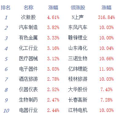 从盘面上看,板块普遍飘红,无人驾驶、汽车整车、特斯拉、消费电子、光刻胶等板块居涨幅榜前列;钢铁、养殖业、数字货币、油气等少数板块表现较弱。