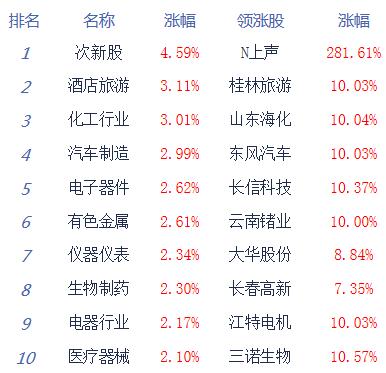 从盘面上看,板块普遍飘红,无人驾驶、汽车整车、旅游、消费电子、特斯拉等板块居涨幅榜前列;海南、数字货币、养殖业、地产等少数板块表现较弱。