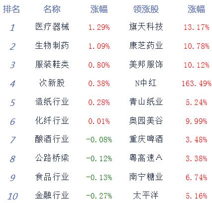 从盘面上看,多数板块飘绿,生物医药、二胎概念、纺织、造纸、医疗器械等板块居涨幅榜前列;华为汽车、碳中和、煤炭、半导体、消费电子、钢铁等板块居跌幅榜前列。