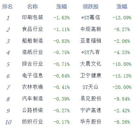 A股市场板块及个股涨跌幅排行