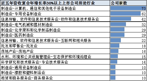 再来看看哪些行业在持续高增长。中证君通过统计发现,有557家公司近4年营收复合年增长率在30%以上。