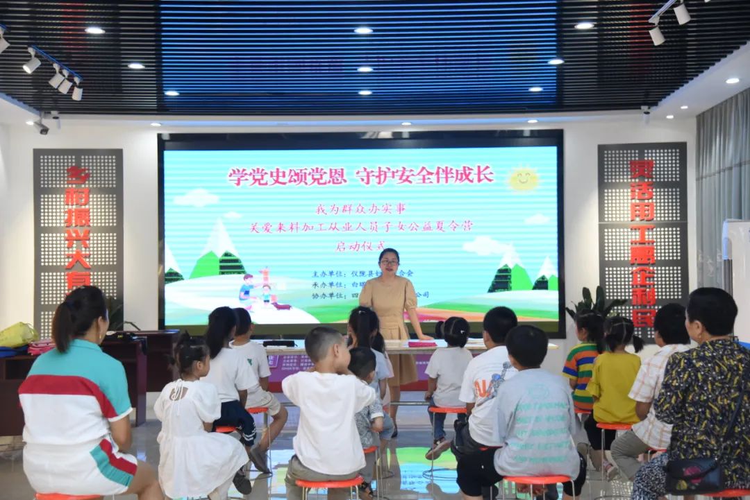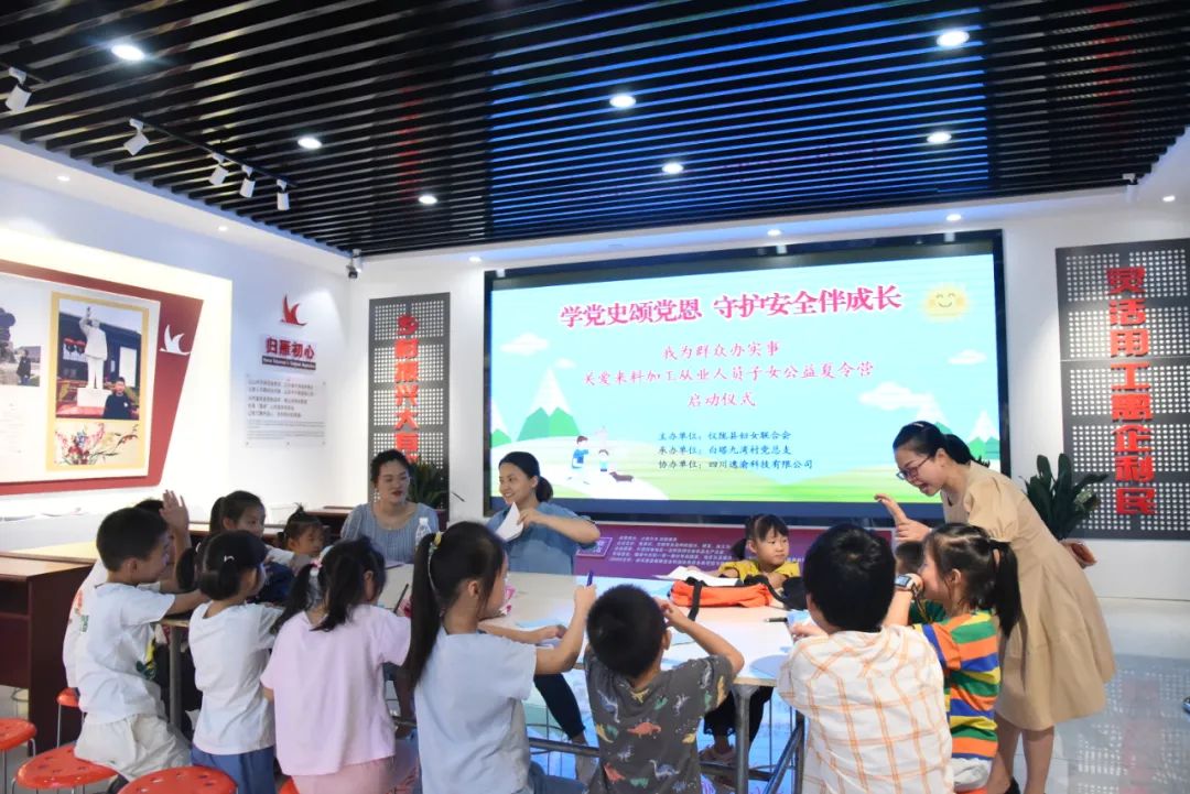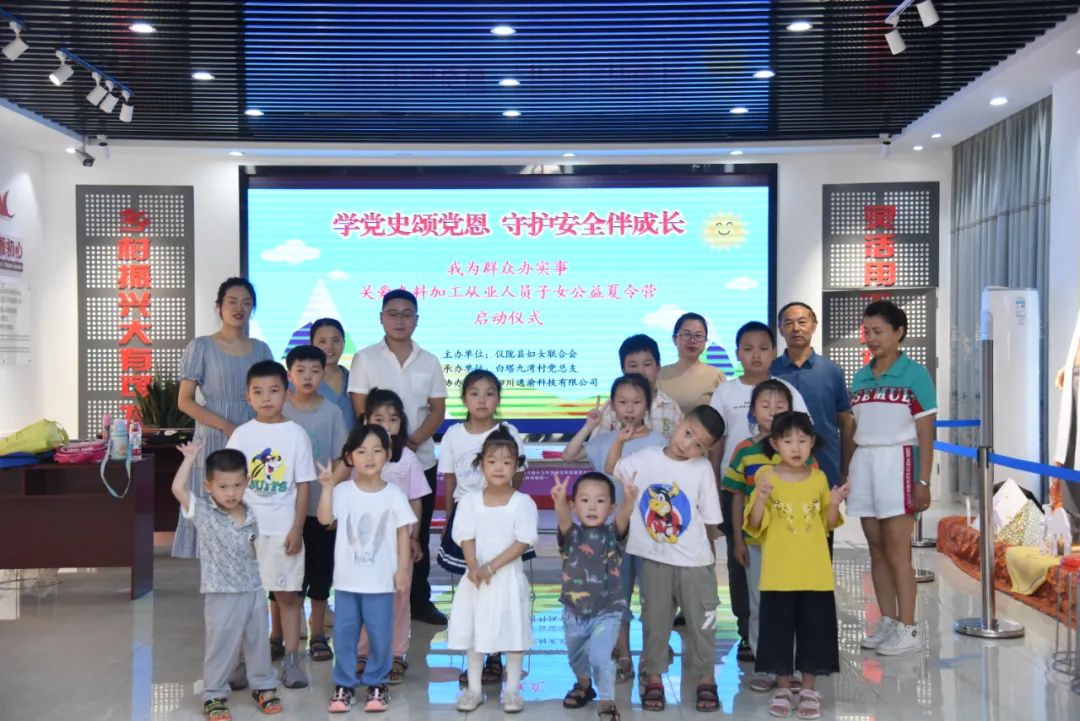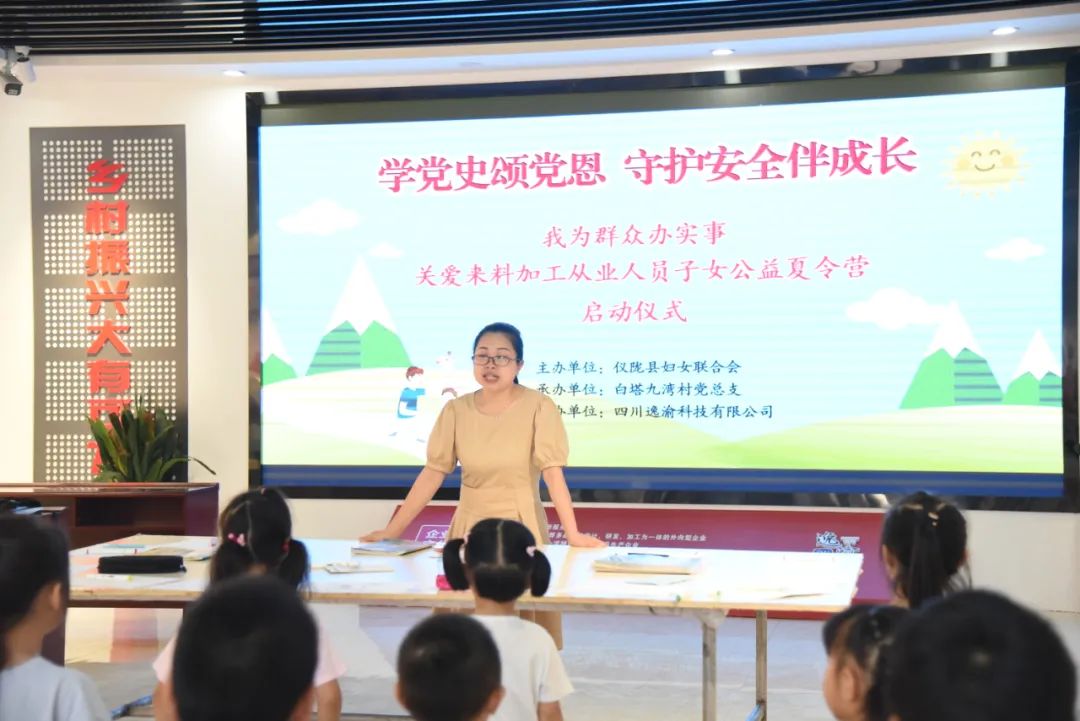 为贯彻落实党史学习教育“我为企业办实事”活动以及全国妇联《关于开展“学党史颂党恩 守护安全伴成长”2021暑期儿童关爱服务活动的通知》文件精神,切实解决我县来料加工招工稳工难、从业人员子女无人照顾等实际问题,进一步优化企业用工环境,提升企业工作效率。8月2日,由仪陇县妇联和日兴镇党委政府主办,白塔九湾村党总支和四川逸渝科技有限公司承办的“'学党史颂党恩 守护安全伴成长'关爱来料加工从业人员子女公益夏令营”在逸渝科技有限公司正式开营。