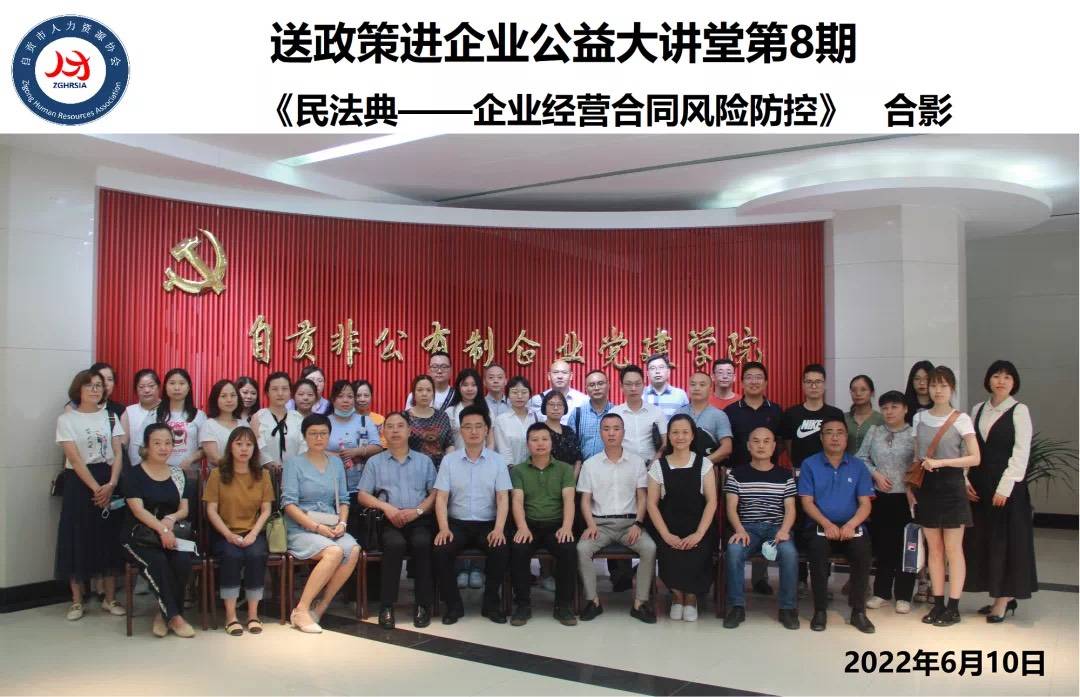 6月10日下午,由自贡非公有制企业党建学院、自贡市人力资源协会组织的“送政策进企业公益大讲堂”第八期——《民法典——企业经营合同风险防控》活动在自贡非公有制企业党建学院成功举办。自贡硬合、川润股份、兴储世纪等28家单位45名管理者参加了活动。