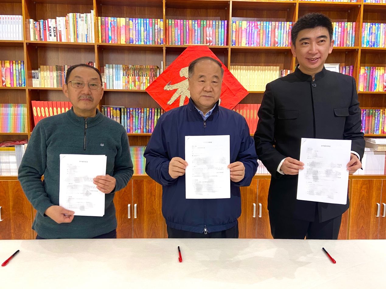 (左起:中华慈善总会副会长刘伟,诺贝尔文学奖获得者莫言,云南白药CEO董明)