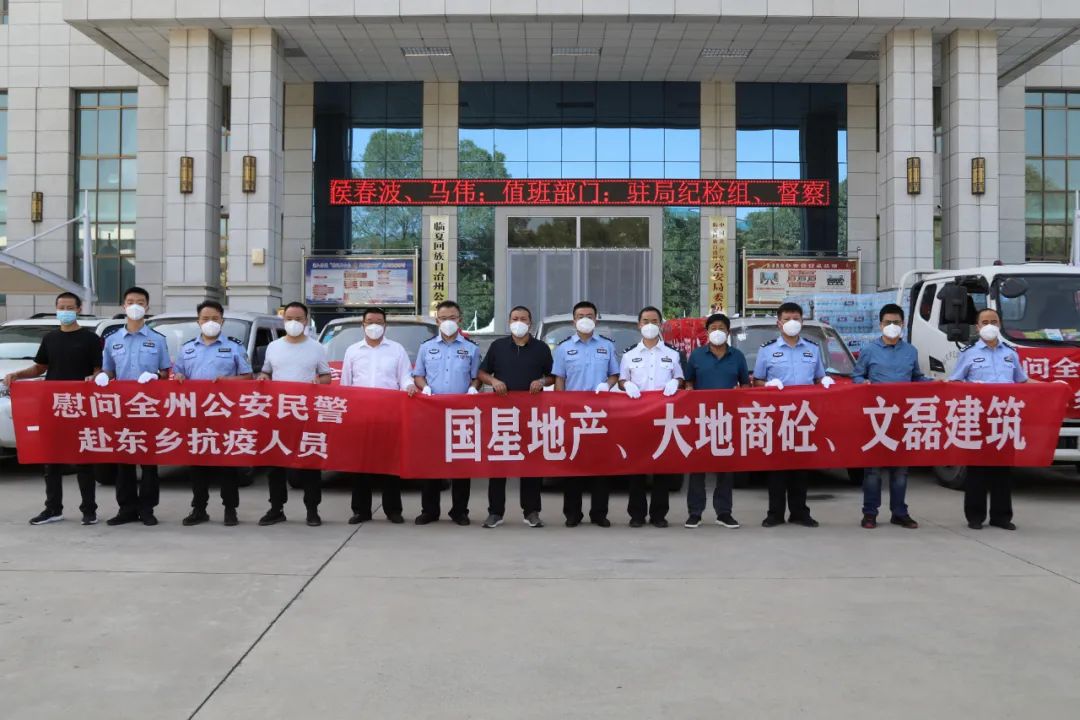 在全州疫情防控的关键时期,为鼓舞士气,增强斗志,7月29日上午,甘肃国星房地产开发有限公司董事长马海兵携临夏大地商砼有限公司、甘肃文磊建筑实业有限公司和临夏市惠兴农业科技有限公司用实际行动助力临夏州疫情防控,捐赠价值10万余元的方便面、矿泉水、牛奶、酸奶、西瓜等,为抗疫一线民辅警送上温暖关怀,州局党委委员、政治部主任马效华,政治部、指挥中心及警务保障处主要负责同志参加慰问。