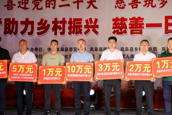 为更好地助力乡村振兴,服务地方经济发展,2022年7月20日,由中共岚皋县委宣传部、岚皋县民政局、岚皋县乡村振兴局、岚皋县慈善协会联合主办的“助力乡村振兴·慈善一日捐”活动,在岚皋县碗场坝广场隆重举行。陕西乾翔健康科技有限公司积极响应岚皋县“慈善一日捐”活动号召,向陕西省安康市岚皋县慈善协会捐赠10万元,用于助力岚皋县乡村振兴、安老扶弱、慈善助医、助学助残等工作。
