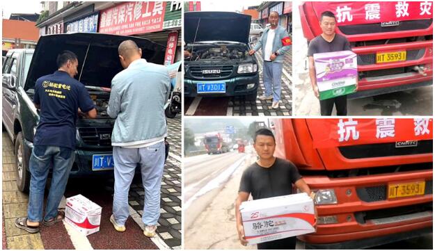 蓄电池救援之外,骆驼救援小组还自发贡献了更多爱心。9月9日,一辆返回雅安的皮卡车突然启动困难,在为皮卡车免费更换骆驼蓄电池后,救援人员得知车上乘坐的是一批奔赴一线指挥救援的党员干部,于是他们紧急筹措了一批救援物资委托党员干部代为捐赠,为灾区人民再多添一份帮助。