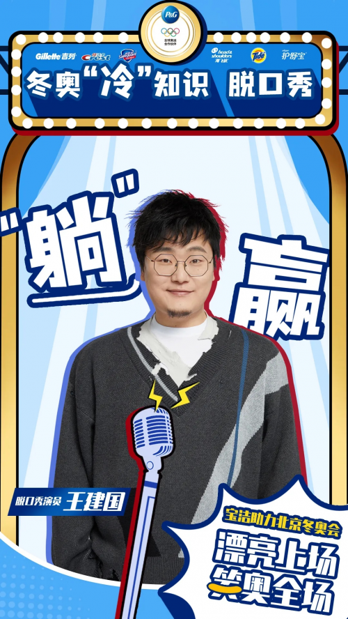 2022 年北京冬奥会之际,宝洁联合笑果文化携手魅力冬奥·宝洁漂亮助力大使王建国、王勉、庞博、呼兰、何广智、徐志胜、周奇墨、杨蒙恩、程璐、豆豆、颜怡颜悦、吐提共同打造冬奥冷知识脱口秀。笑果文化演员们通过趣味科普冬奥知识,分享冬奥运动员同款好物,让观众在轻松看懂冬奥项目的同时,助力中国运动健儿“漂亮上场”。