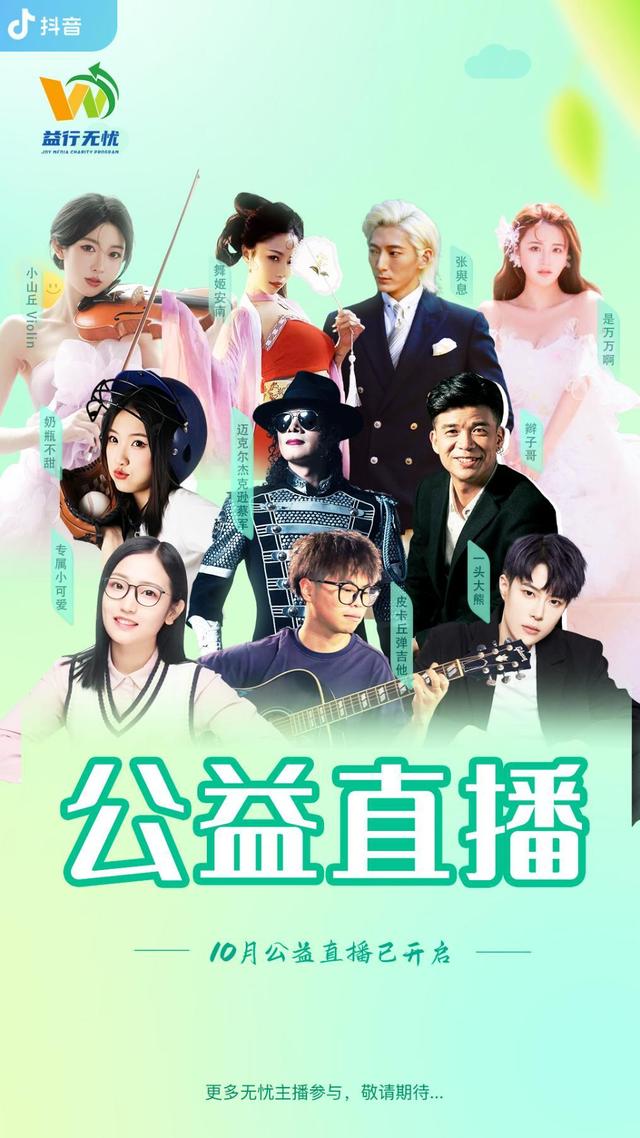 自9月以来,奶瓶不甜、张與息、辫子哥、专属小可爱、小山丘violin、皮卡丘弹吉他、一头大熊、是万万呀、迈克尔杰克逊蔡军、舞姬安南等10位来自无忧传媒的主播纷纷开启公益直播,连麦爱心机构、户外暖心开唱、线上呼吁支持公益,累计观看次数达70万,吸引观看人数达62万。