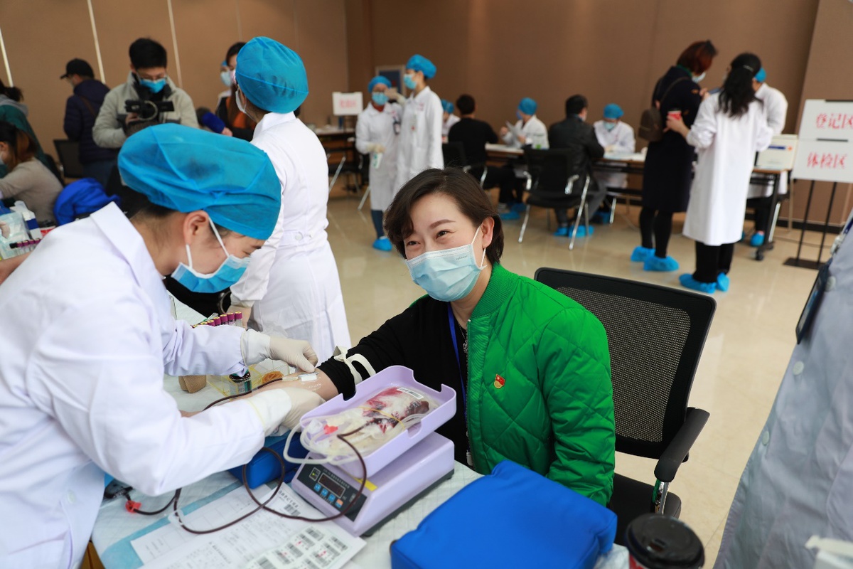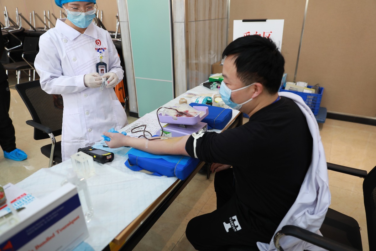中国日报网武汉4月1日电(记者 苏峰)4月1日上午,武汉市血液中心组织党员职工团体献血活动,以满足迅速增加的临床用血需求,同时满足医疗系统恢复正常后,非新冠肺炎病人的手术用血需求,共有60多名职工及职工家属参加献血。对于如何确保血液安全,相关负责人介绍,所有血液将进行病毒核酸检测和抗体检测。