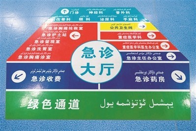 在韦广莹推动下,疏附县人民医院急诊科大厅内有了清晰的就诊指引。