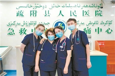 在疏附县人民医院的急诊大厅里,“各民族要像石榴籽一样紧紧抱在一起”的标语格外醒目。“交流、交往、交融——我们的医生有汉族的,也有少数民族的,为了便于医患沟通,每对搭班的医生都是一个汉族、一个少数民族这样搭配,也便于大家互相学习。”在新疆这两年多,即便经历了很多的困难时刻,韦广莹却觉得心里满满的都是温暖。“我们像石榴籽一样,紧紧抱在一起。”