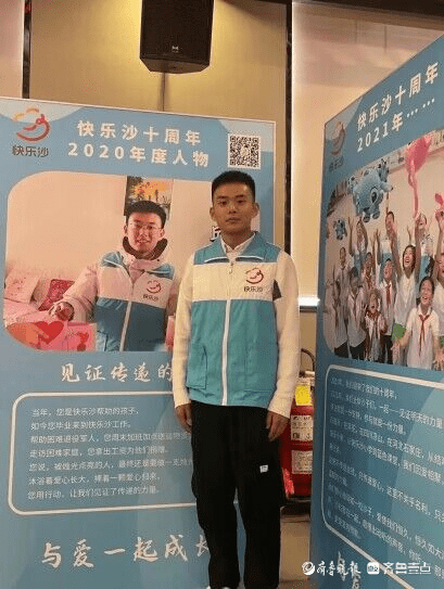 11月7日14时许,在青岛汇益港湾社会组织创新园,记者见到了他。今年21岁的邱淑平留着毛寸,皮肤白皙,笑容腼腆。他身高一米七五左右,内穿一件浅蓝色衬衫,套一件蓝白相间的义工马甲,有一股超出年龄的干练、稳重。