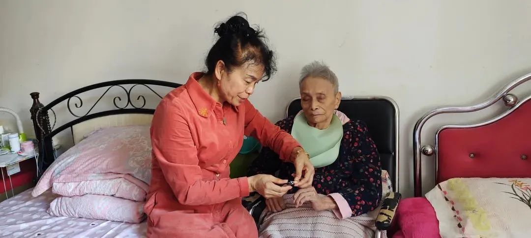 每天清晨,何凤琼买完菜回来,就忙着为母亲洗漱翻身,然后为母亲喂饭。何凤琼的母亲现年85岁,生活起居一直需要家人照料。何凤琼退休后,照顾母亲的工作占据了她的绝大多数时间,她总是亲力亲为,从无怨言,耐心细心地照顾着老人。