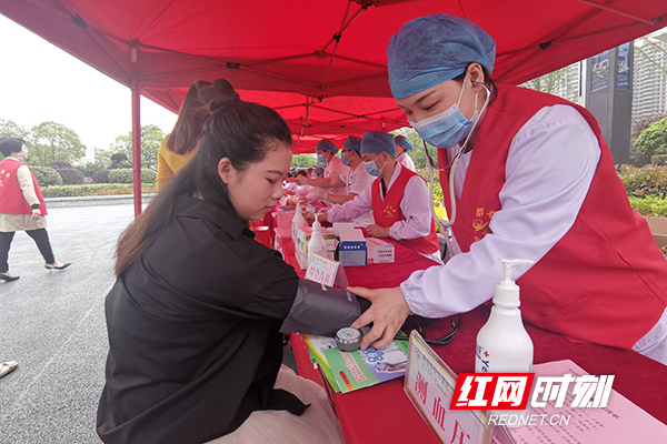 活动现场,衡阳市中心医院等4所医院开展义诊活动。