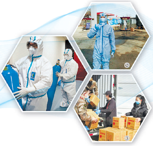 | 图①:赵东(右)和老师一起搬氧气瓶。 受访者供图 图②:肖皓源赴火神山医院做志愿服务。 受访者供图 图③:王婉格在协助搬运物资。 受访者供图 本版制图:张丹峰 |