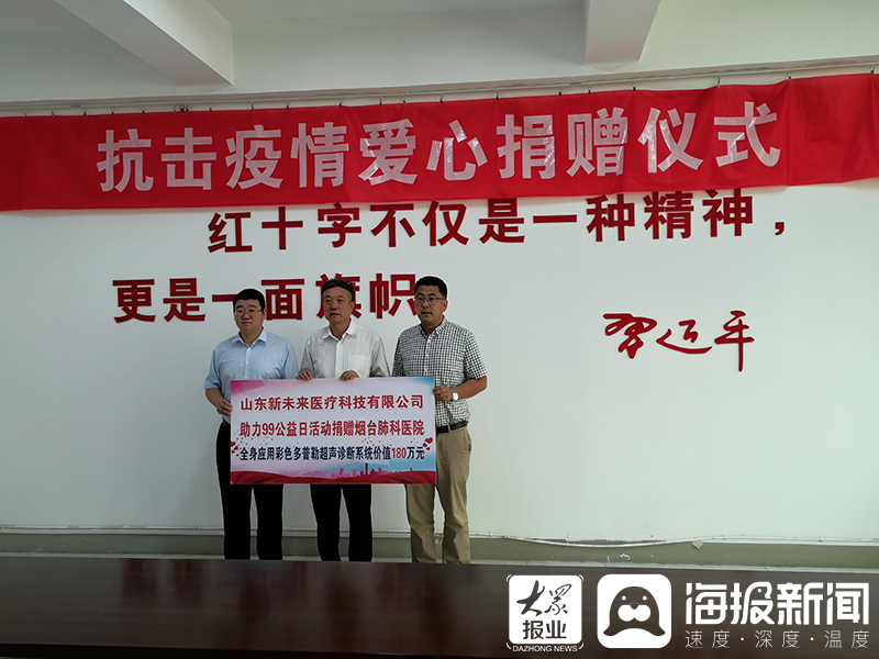 9月7日,在“99公益日”活动启动之际,山东新未来医疗科技有限公司助力99公益日活动,向烟台市红十字会定向捐赠烟台肺科医院价值180万元的全身应用彩色多普勒超声诊断系统,用于支持该院开展新型冠状病毒肺炎疫情的防控救治临床工作,为抗击疫情、服务人民健康增添一份技术保障。烟台市红十字会副会长尼安宁,芝罘区卫生健康局党组成员、烟台肺科医院书记、院长柳大伟,山东新未来医疗科技有限公司总经理颜向光出席捐赠仪式并共同签署协议。
