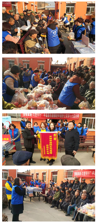晋中市平遥县东泉镇现辖22个行政村,33个自然村。老年福寿公寓是东泉镇政府为全镇五保老人设立的敬老院,住有55位孤寡老人,全部为男性,无子嗣,缺少亲人的陪伴,大多感到寂寞。志愿者们为福利中心的老人送去了过冬物资,询问他们的健康和生活情况,让他们感受到来自爱心企业的温暖。