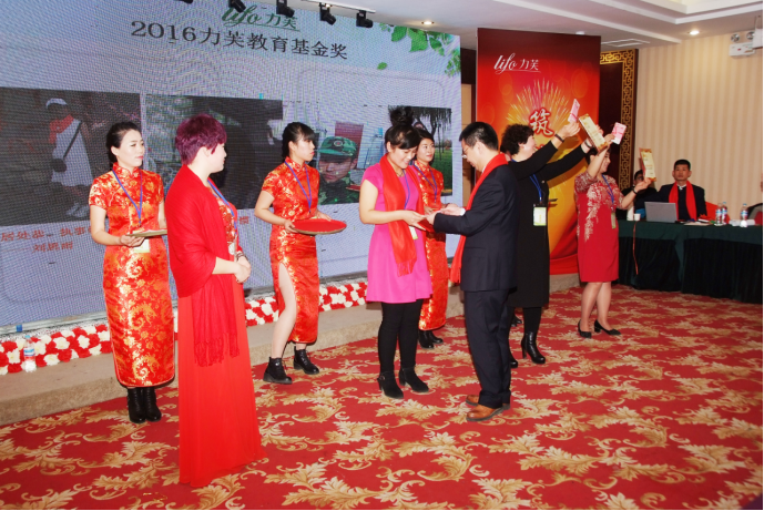 此次活动厦门市力芙生物科技有限公司王伟江董事长为刘同学(甘肃政法学院 法学专业)、周同学(山东大学 法学专业)、魏同学(白城师范学院)、梁同学(西安财经学院,工程专业)四位优秀学子家长代表颁发了共计2万元助学金。