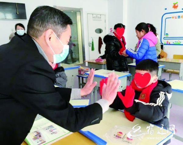 宿迁市特殊需要儿童康复协会创办人贺钰,引导各位爱心代表参观协会,并做相关介绍。大家财产保险有限责任公司宿迁中心支公司的爱心代表们,走进教室为孩子们送上围巾和手套,同学们收到礼物非常开心。火红的手套和围巾不仅让大家身体暖暖的,更让大家心暖暖的。