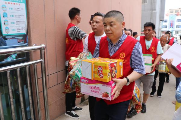 太康万城商贸和万城太康壹家人公益团给自闭症儿童送来牛奶、面包等食物