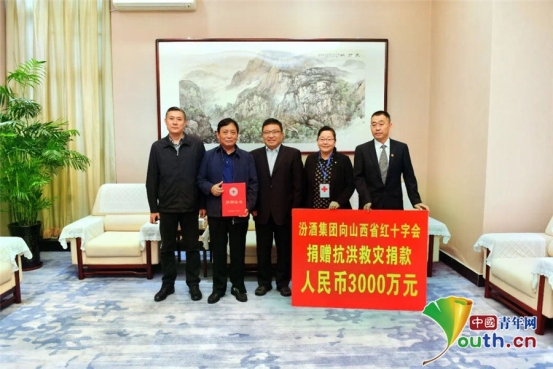 汾酒集团向山西省红十字会捐赠抗洪救灾捐款3000万元。汾酒集团供图