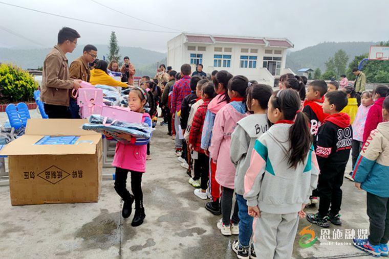 10月18日,白杨坪镇九根树村小学,江西五十铃汽车有限公司正在开展 “冬日送暖 守护童心”点亮计划爱心捐赠活动。本次爱心捐赠活动共为九根树小学捐赠书包、跳绳、羽绒服、彩笔共计55套。