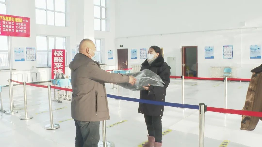 活动中,绿熙农业发展有限公司代表把购买的大衣送到雨亭街道办事处,协助分发给基层一线人员,并把部分大衣送到基层社区和铁路卡口值守人员手中。