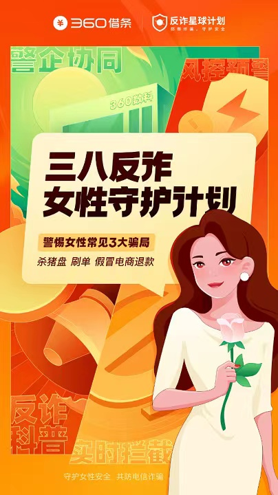 3月8日妇女节,360借条反诈实验室发布特别提醒,警惕防范专盯女性的“杀猪盘”、刷单、假冒电商退款3大骗局。此外,360借条也公布2020年以来女性反诈数据:截至目前,反诈团队成功识别并劝阻了11926名潜在受骗女性用户,共计保护避免损失1.46亿元。未来,360借条反诈团队将持续加大科技投入,为女性用户财产安全保驾护航。