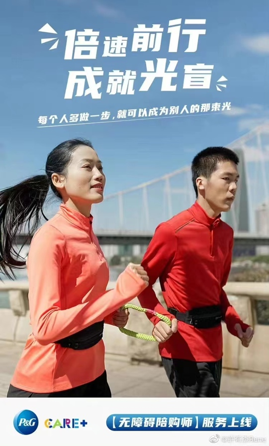 为此,宝洁CARE+上线「无障碍陪购师」服务,在购物这件小事中为他们多做一步,让他们在用耳朵进行线上购物时更加便利与安心。并携手中国残疾人福利基金会、广东盲协联合发起「倍速前行,成就光盲」公益活动。活动期间,宝洁CARE+在3月7日上线公益宣传片,并向大众呼吁:每个人,都可以成为别人的一束光。