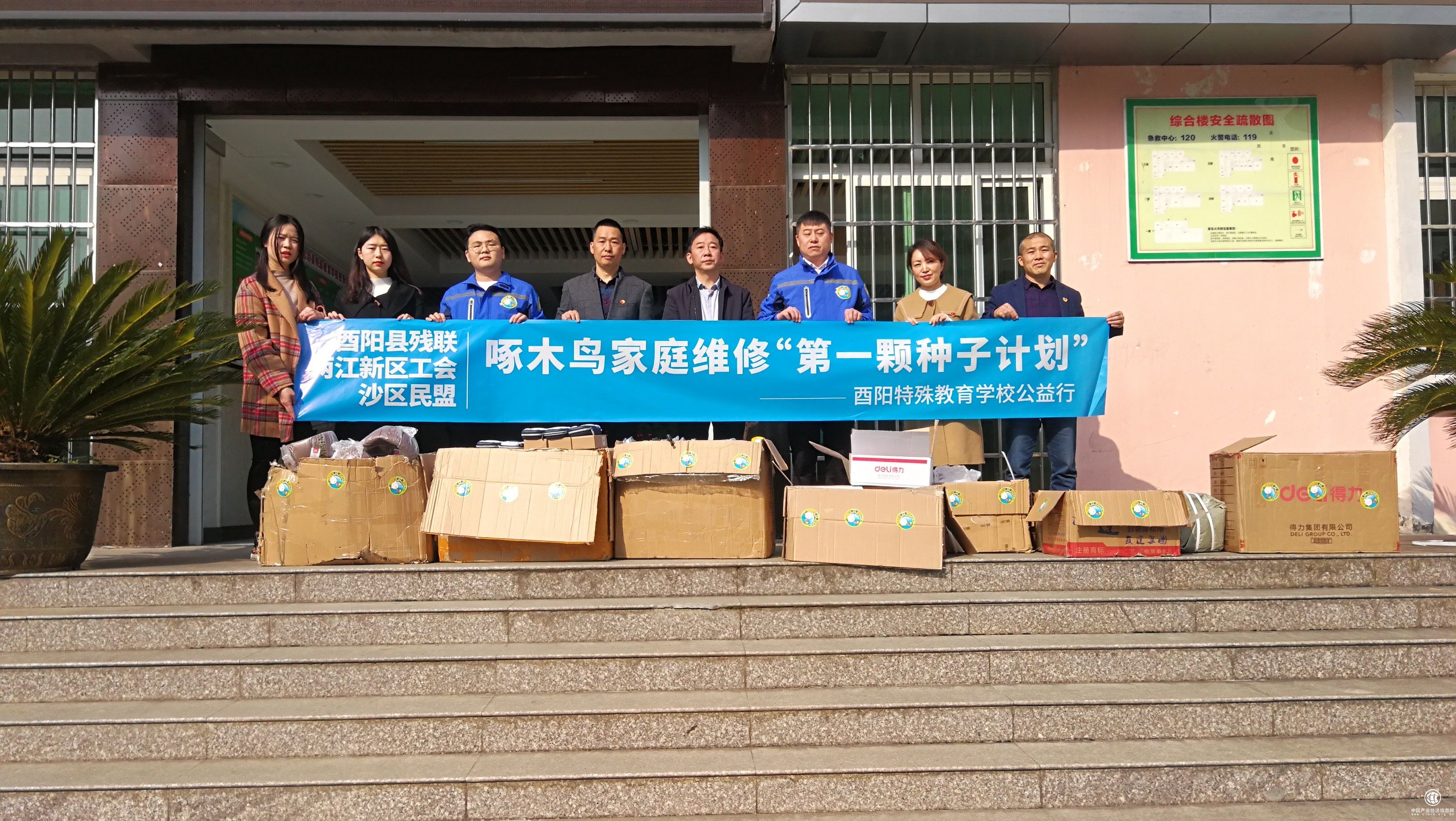 2022年3月11日,正值312植树节前夕,啄木鸟家庭维修(简称:啄木鸟)和两江工会、沙区民盟一行前往酉阳县特殊教育学校践行“第一颗种子计划”公益活动,酉阳县残联现场指导和协办。啄木鸟一行用实际行动关爱与陪伴当地特殊儿童,与孩子们一起植树,辛勤灌溉,将希望和爱种植在孩子们的心中。