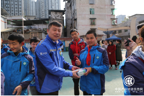 致辞结束后由啄木鸟企业代表为学生们送上爱心希望包,里面有他们日常所需的学习用品和体育用具,孩子们的笑脸如春日阳光一样灿烂。