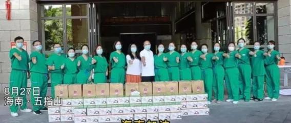 海南思德教育产业投资有限公司五指山负责人 王丽娟: 因为我在一线做过志愿者,也感觉到来支援抗疫的医生为我们五指山的抗疫付出了辛勤的劳动,非常辛苦,所以我就想把这些水果送给这些医务人员。并且我在五指山新闻看山竹滞销的新闻,想要帮助这些企业解决困难,帮他销售这些水果。