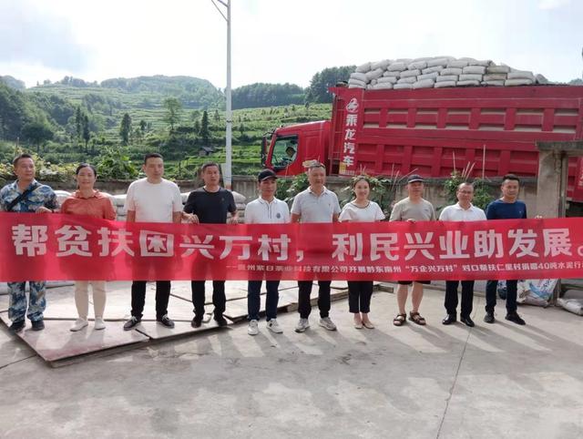 日前,贵州紫日茶业科技有限公司在县工商联主要负责人同志的陪同下,到黄平县野洞河镇仁里村捐赠40吨水泥用于产业基础设施建设。