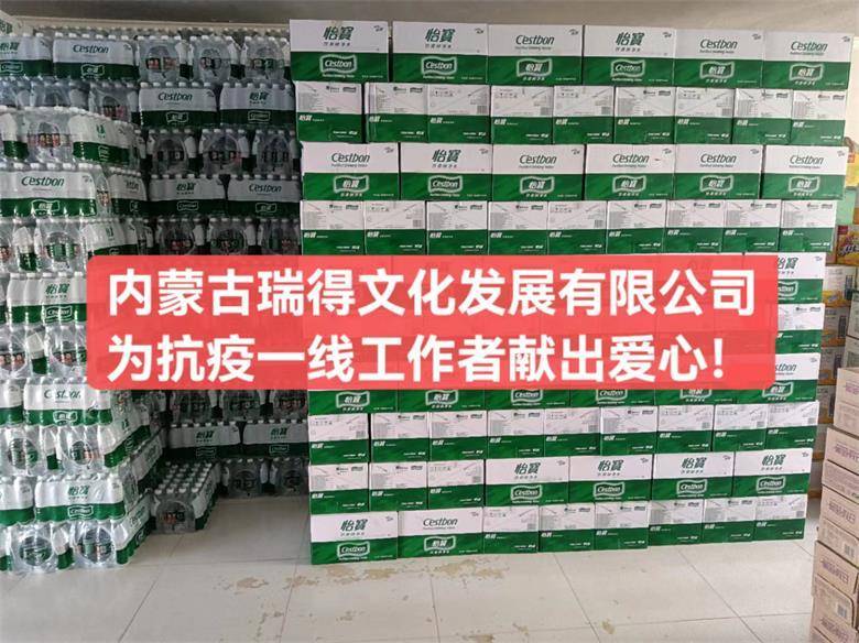 同心战“疫”,共克时艰。10月16日,内蒙古瑞得文化发展有限公司总经理许萍向呼和浩特市回民区一线抗疫人员捐赠200箱矿泉水,深切表达内蒙古瑞得文化发展有限公司对一线抗疫工作人员的关心和敬意。