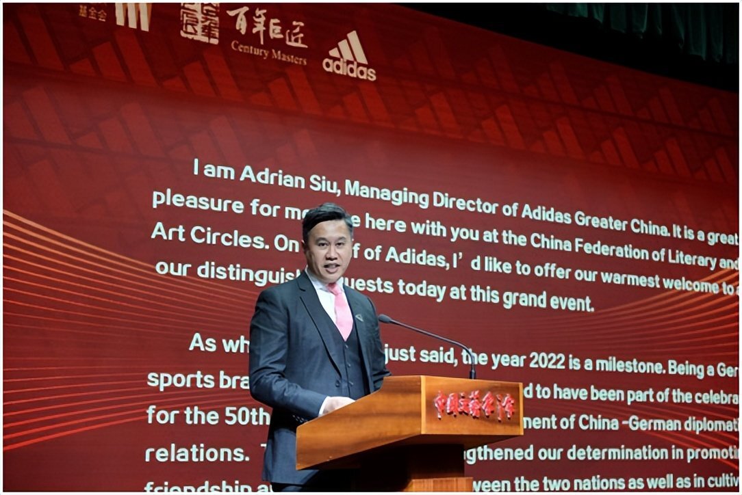2022年11月5日,为庆祝中国德国建交50周年,以及更好地在中国开展体育公益文化事业,中国文学艺术基金会与阿迪达斯体育(中国)有限公司签署战略合作备忘录暨《百年巨匠·体育篇·教育篇》启动仪式在北京中国文联举行。