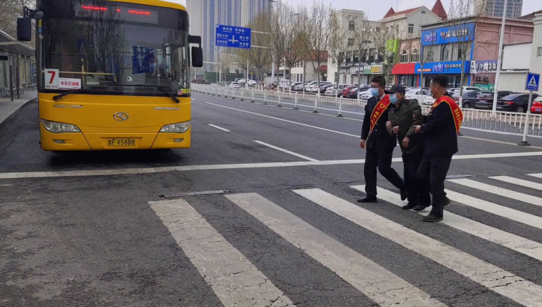 4月20日,烟台公交集团福山区公司“NO.1”爱心服务队的志愿者们身穿红马甲,利用休班时间,自发到红利市场附近的公交站点为乘客提供文明引导服务,维持站点乘车秩序,呼吁市民有序上下车。