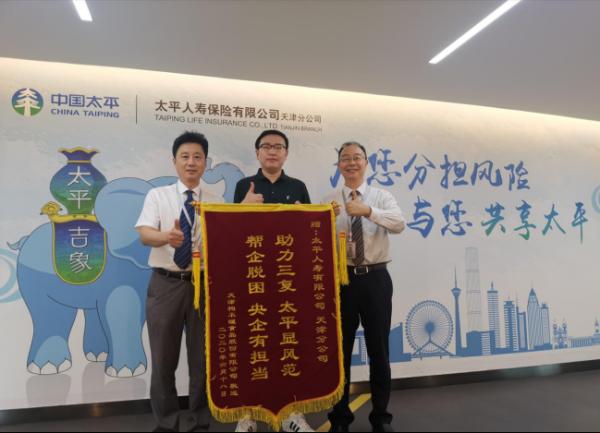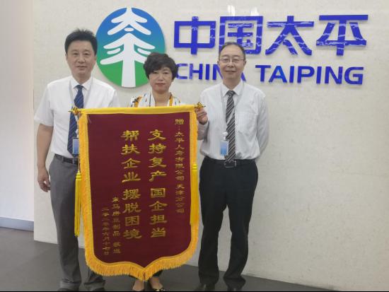 近日,天津狗不理食品股份有限公司以及蓟州莹丽牌酸枣汁、武清东马房豆制品、可居牌吊炉花生的生产厂家相关负责人分别带着锦旗来到太平人寿天津分公司,表达感激之情。锦旗所写“助力三复太平显风范,帮企脱困央企有担当”、“支持复产国企担当,帮扶企业摆脱困境”等内容表达了民营企业家们此时的心声。