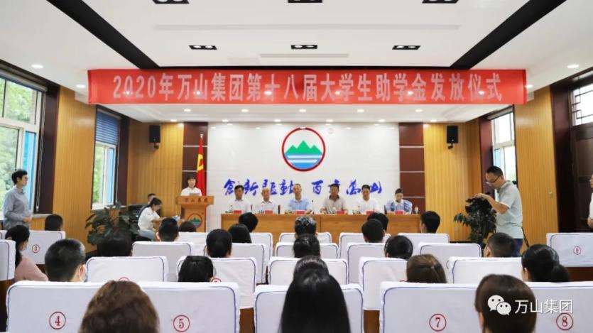 2020年8月26日,山东万山集团举行2020年金秋助学金发放仪式,为今年考上大学的24名集团职工子女和万庄村村民子女发放助学金共计144000元,为他们带来关爱和鼓励。据了解,山东万山集团这项公益活动自2002年来已经持续了18年,通过发放助学金的形式累计资助500多名新晋大学生走进大学校门。本次助学金发放仪式上,受助学生代表表示,山东万山集团为他们学生发放助学金,是对他们生活上的很大帮助,对他们心灵上来说这不单是一份金钱,更是万山集团对学子爱护、对教育的支持,这是最让他们感动的地方。