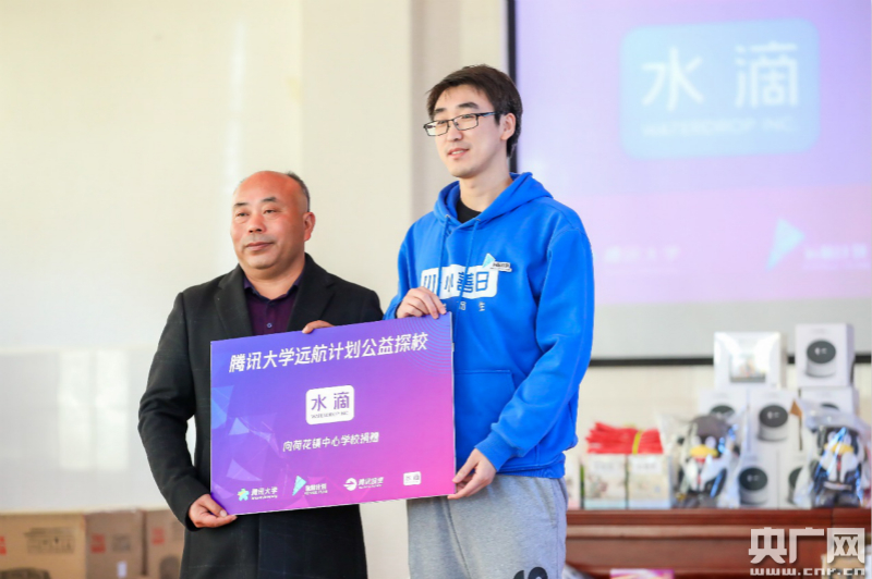 此次公益探校活动也是腾讯大学远航计划第三期学员的毕业典礼环节。胡尧与其他企业家学员代表将远航计划三期学员学费共计2493000元捐赠予美丽中国支教项目,并向荷花镇中心小学捐赠教学物资。
