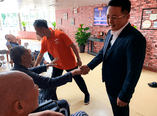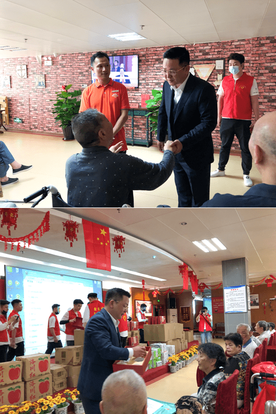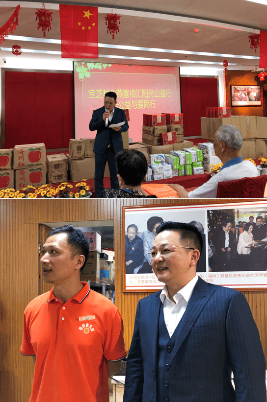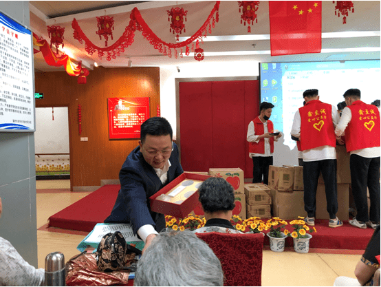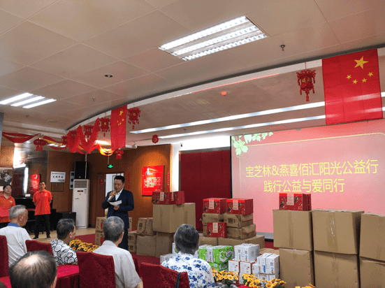 服务中心的工作人员在台上表明了爱心团队的来意,老人家们对爱心团队的到来表达了欣喜和欢迎。宝芝林&燕喜佰汇创始人邵时荣在台上致词:“社会各界一直以来都在积极探索一个完善的养老模式,让每一位老人家能够安度晚年。在各项政策的施行下,老年群体的生活逐步得到改善,但是在人文关怀上尚有不足。一个好的养老环境,离不开物质和精神两方面,为老年人提供温暖的情感交流也是十分重要的,这关乎老年群体精神层面上的幸福感。作为一家企业,希望通过我们的努力为老年群体增加一点幸福感。”