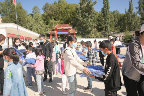 图:“燕小屋公益成长计划”向广河县槐沟小学捐赠教学物资以及校服