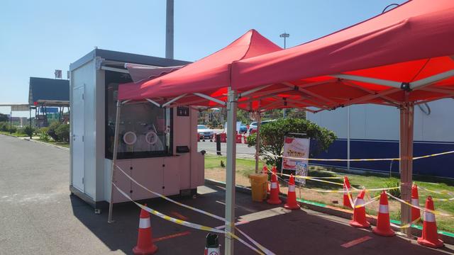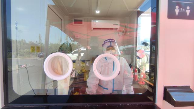 另一处核酸小屋设置于游客换乘中心。此前此类采样点大多是临时搭建,回收清场较为浪费时间,而核酸小屋实现了核酸采样无接触,保护了操作员的安全健康,有利于防止交叉感染,进一步提升效率。