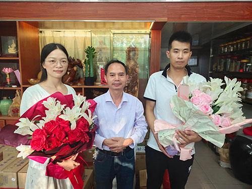 2022年9月3日,民间根雕艺术家谢一棚、爱心企业家汤丽珍、李启洋、周小芸一行人前往江西赣州崇义县编研温暖之家爱心协会开展传统微公益文化交流,谢文淦对谢一棚和汤丽珍的到访表示欢迎,并以献花方式来迎接两位贵客的到来。