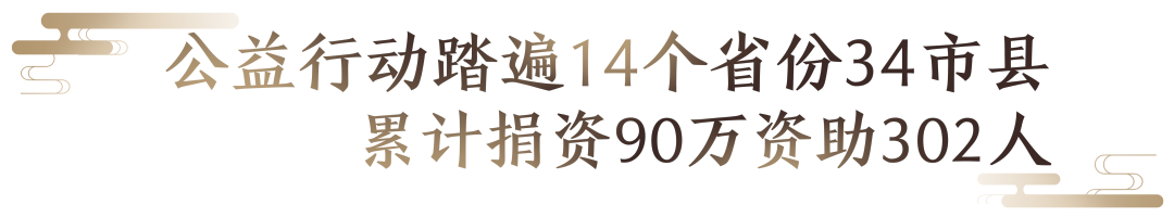 依托众多爱心人士的支持,基金会一直致力于在教育领域贡献力量,基金会收到的所有捐款致力为品学兼优的学生提供助学资金。如今,基金会公益教育行动的足迹已走过全国15个省份,实现近400次助学及教育教学设施援助活动,累计帮助受惠学生7000余人。