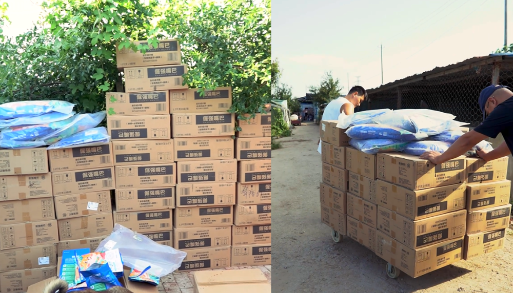 立白捐赠的8.8吨倔强嘴巴宠物粮正在搬往宠物基地