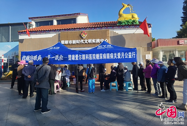 11月14日是第16个“联合国糖尿病日”,为提高人们对糖尿病眼病的认识,从而提升防治意识,降低糖尿病眼病致盲率,楚雄爱尔眼科医院于11月15日在云南省楚雄市桃源湖广场开展“控糖防眼病 一年一眼检——糖尿病眼病关爱月公益行”活动。