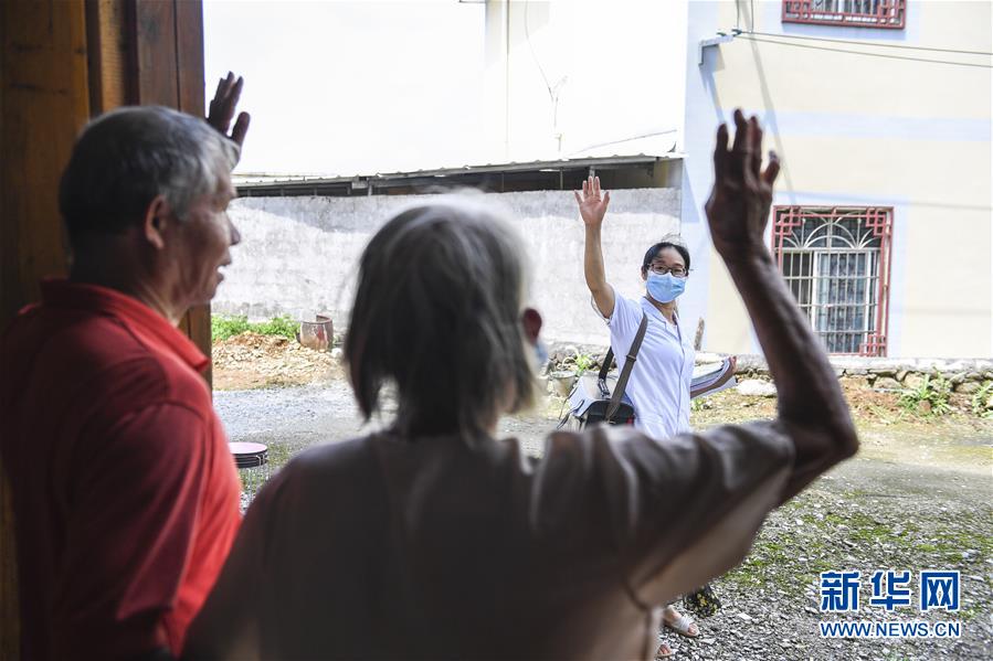 出诊结束后,东乡镇河马村村民与江凤英挥手告别。